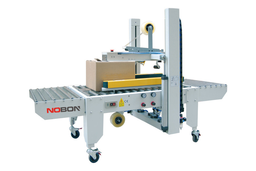 全自動封箱機NFE-50可以自動調節紙箱高度及寬度,更換不同規格紙箱無需人工調節;推薦更換紙箱規格頻繁的用戶使用。可同時對紙箱進行上下“一”字型封箱,兩側馬達驅動皮帶自動校正、輸送紙箱,封箱時快速平穩,適用于較重較寬紙箱。兩側輔助輪協助機器封箱時中縫集中不開裂。臺面高度、紙箱寬度高度可自動調節,簡單實用。造型典雅大方,配備刀片防護裝置,避免操作時意外刺傷。機件穩固耐用,使用壽命長。機身自帶四個高強度剎車輪,換位工作非常方便。產品不是很重的話可以選擇經濟型封箱機左右驅動型NF-50.